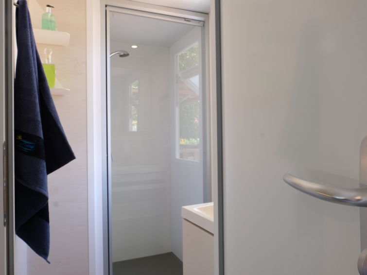 "Happy Premium", 4-Zimmer-Mobilheim 30 m2. Komfortabel eingerichtet: Wohn-/Esszimmer mit E-Heizung und Klimaanlage. 1 Zimmer mit 1 franz. Bett (140 cm, Länge 190 cm). 2 Zimmer, jedes Zimmer mit 2 Betten (70 cm, Länge 190 cm). Offene Küche (4 Kochplatten, Mikrowelle, Tiefkühler, elektrische Kaffeemaschine). Dusche/WC. Terrasse teilweise überdacht. Terrassenmöbel, Elektrogrill (mobil), Liegestühle (2). Zur Verfügung: Fliegengitter. Parkplatz (1 Auto) beim Haus. Bitte beachten: Nichtraucher-Unterkunft. IT074002B100024512
