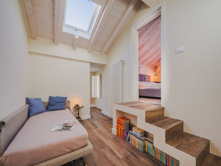 "Rosa dei Venti", 3-Zimmer-Doppelhaushälfte 150 m2 auf 2 Stockwerken, im Erdgeschoss. Geräumig, teilweise abgeschrägt, vollständig renoviert im Jahre 2024, sehr zweckmässig und gemütlich eingerichtet: offenes Wohn-/Esszimmer mit TV (Flachbildschirm), Klimaanlage. Ausgang zum Gartensitzplatz. 1 Doppelzimmer mit Klimaanlage. Kochnische (Backofen, Geschirrspüler, 4 Induktionskochplatten, Toaster, Wasserkocher, Tiefkühler, elektrische Kaffeemaschine). Ausgang zum Gartensitzplatz. Dusche/Bidet/WC. G-Heizung, Klimaanlage. Heizung nur verfügbar von 01.11. bis 07.04. Obergeschoss: abgeschrägte, offene Galerie mit 1 Bett (80 cm, Länge 190 cm), Klimaanlage. 1 Doppelzimmer. Sep. WC. G-Heizung, Klimaanlage. Heizung nur verfügbar von 01.11. bis 07.04. Grosser Gartensitzplatz. Sitzplatz. Zur Verfügung: Waschmaschine, Bügeleisen, Haartrockner. Internet (Wireless LAN, gratis). Parkplatz (eingezäunt, 2 Autos). Bitte beachten: Nichtraucher-Haus. Rauchmelder, Feuerlöscher. IT046005C2ABTQPCZ9