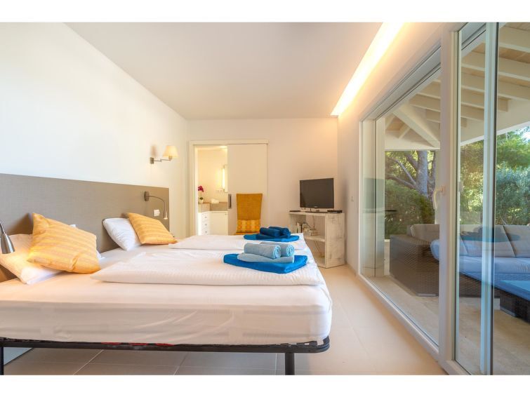 "Orquidea 34", 6-Zimmer-Wohnung 435 m2 auf 2 Stockwerken, Nordwestlage. Objekt geeignet für 8 Erwachsene. Geräumig und hell, sehr modern und luxuriös eingerichtet: grosses Wohn-/Esszimmer mit Esstisch, Digital-TV, Internationale TV-Sender, Klimaanlage und Warmluftheizung. Ausgang zum Gartensitzplatz, zum Schwimmbad. 1 grosses Doppelzimmer mit Panoramafenster mit 1 Doppelbett (2 x 90 cm, Länge 200 cm), Bad/WC, Klimaanlage und Warmluftheizung. Ausgang zur Terrasse, zum Schwimmbad. 1 Doppelzimmer mit Panoramafenster mit 1 Doppelbett (2 x 90 cm, Länge 200 cm), Dusche/WC, G-Heizung, Klimaanlage und Warmluftheizung. 1 Doppelzimmer mit Panoramafenster mit 1 Doppelbett (2 x 90 cm, Länge 200 cm), Bad/Dusche/WC, Digital-TV, Internationale TV-Sender, G-Heizung, Klimaanlage und Warmluftheizung. Küche (Backofen, Geschirrspüler, 1 Glaskeramikplatte, 4 Flammen, Toaster, Wasserkocher, Mikrowelle, Tiefkühler, elektrische Kaffeemaschine, Kochinsel) mit Digital-TV, Internationale TV-Sender, Klimaanlage und Warmluftheizung. Ausgang zur Terrasse. Bad. Klimaanlage, Warmluftheizung. Obergeschoss: 1 grosses Doppelzimmer mit Schiebetür mit 1 franz. Bett (180 cm, Länge 200 cm), Dusche/WC, Klimaanlage und Warmluftheizung. Ausgang zur Terrasse. Grosser Gartensitzplatz. Terrassenmöbel, Gartengrill, Liegestühle (8), Loggia, Sitzplatz. Herrliche Sicht auf das Meer, die Berge und den Wald. Zur Verfügung: Waschmaschine, Wäschetrockner, Sauna, Bügeleisen, Haartrockner. Internet (Wireless LAN, gratis). Parkplatz. Bitte beachten: für Kleinkinder nicht geeignet. Feuerlöscher. Der ausgeschriebene Pool ist zur alleinigen Nutzung. ETV/15893