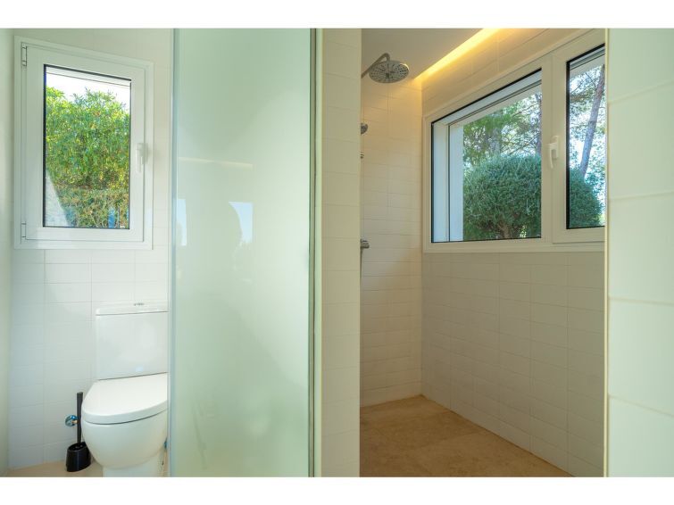 Betlem 16 km von Arta: Grosse, moderne, luxuriöse Villa "Orquidea 34", auf 2 Stockwerken, Baujahr 1993, renoviert im Jahre 2013, umgeben von Bäumen. Im Ort, 1 km vom Zentrum von Betlem, im Villenviertel, exzellente Lage: Absolut zentral und dennoch ruhig, verkehrsberuhigte Zone, 10 m vom Waldrand, 250 m vom Meer, 300 m vom Strand, Richtung Nordwesten. Zur Alleinbenutzung: grosser Garten, Schwimmbad eckig (10 x 5 m, 100 - 200 cm tief, saisonale Verfügbarkeit: 01.Mar. - 30.Nov.). Aussendusche, Sitzplatz, Grill, Poolpflege durch den Besitzer/Gärtner. Im Hause: Sauna, Fitnessraum. Parkplatz auf dem Grundstück. Einkaufsgeschäft 200 m, Lebensmittelgeschäft 250 m, Supermarkt 4 km, Restaurant 300 m, Bar 250 m, Bäckerei 200 m, Café 250 m, Fußgängerzone 100 m, Zentrum zu Fuss in 10 Minuten erreichbar, Bushaltestelle 260 m, Sandstrand "Platja de Betlem" 1 km, Felsstrand "Cala Fonda" 350 m. Sporthafen 4 km, Jacht-Hafen 4 km, Golfplatz (18 Loch) 18 km, Surfschule 4 km, Segelschule 4 km, Tennis 15 km, Sportzentrum 10 km, Wanderwege ab Haus, Radweg 500 m. Nahe gelegene Sehenswürdigkeiten: Cuevas de Artà 25 km, Cuevas del Drach 40 km. Wandergebiete: Parque Natural de Llevant 1 km. Bitte beachten: Fahrzeug empfohlen. Objekt geeignet für 8 Erwachsene. Flugplatz 75 km vom Haus. Die Nachbarschaft ist sehr lärmempfindlich. Ruhe und gutes Benehmen wird erwartet.