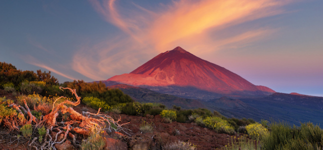 De Teide is met zijn 3718m de grootste berg van Spanje. De hoge top is het hele jaar door met sneeuw bedekt. Hoewel de vulkaan sinds zijn laatste uitbarsting in 1909 als inactief of slapend wordt beschouwd, stijgen nog steeds zwaveldampen op vanaf de bergflanken. Het gebied rond de vulkaan is op zijn minst fascinerend te noemen. De berg zelf ligt namelijk in een krater die Las Cañadas wordt genoemd. Tussen de vulkanische rotsen, asbedden en minerale gesteenten groeien enkele zeldzame planten die enkel hier voorkomen. Probeer zeker eens een ‘tajinaste’ te zien. Dit is een opvallende stengel die in mei en juni vuurrode bloemen heeft en tot twee meter hoog kan worden.