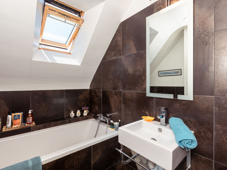 Huis 8-kamers 240 m2 op 2 verdiepingen. Comfortabel en smaakvol ingericht: groot woon-/eetkamer met open haard (alleen decoratie), TV (Flatscreen TV). Uitgang naar het terras. Kleine salon. Uitgang naar het terras. Open keuken (oven, afwasmachine, 3 inductiekookplaten, broodrooster, waterkoker, magnetron, diepvriezer, elektrische koffiemachine). Uitgang naar het terras. Douche, aparte WC. Bovenverdieping: 1 groot kamer met Kleedkamer met 1 2-pers bed (1 x 160 cm, lengte 200 cm). 1 kamer met 1 bed (90 cm, lengte 190 cm), 1 2-pers bed (1 x 140 cm, lengte 190 cm). 1 kamer met 1 2-pers bed (1 x 140 cm, lengte 190 cm). 1 groot kamer met 2 bedden (90 cm, lengte 190 cm), 2 2-pers bedden (1 x 140 cm, lengte 190 cm). (wenteltrap), 1 kamer met afgeschuinde daken met 1 2-pers bed (1 x 140 cm, lengte 190 cm). Badkamer, aparte WC. Groot terras, op het zuiden gelegen. Terrasmeubelen, barbecue, ligstoelen. Zeer mooi uitzicht op zee. Ter beschikking: wasmachine, strijkijzer, kinderbed, haardroger. Internet (Internet (WiFi), gratis). Garage op het terrein. Rookvrij huis. Rookmelders. Aanbod door een particulier volgens art. 155, IV van CGI.
