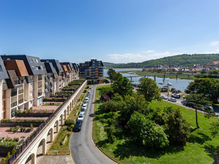 Residentie "Cap Cabourg", van 5 verdiepingen. In de wijk Port de Plaisance, in de plaats, 900 m van het centrum van Cabourg, 20 m van zee, 20 m van het strand, directe toegang tot het strand, op het noordwesten. In het complex: lift. Openbare parkeerplaatsen in de straat. Winkel 900 m, supermarkt 2.9 km, restaurant 900 m, bakkerij 1.5 km, bushalte "Hôtel de Ville" 1.3 km, zandstrand 20 m, overdekt zwembad 1.5 km, thermaalbad "Thalazur" 2.2 km. Jachthaven 50 m, golfterrein (9 holes) 2.6 km, tennis 2.5 km, midgetgolf 750 m. Attracties in de buurt: Deauville 25 km, Casino de Cabourg 1 km, Hippodrome de Cabourg 3 km. Vergelijkbare accommodaties kunnen worden geboekt.
