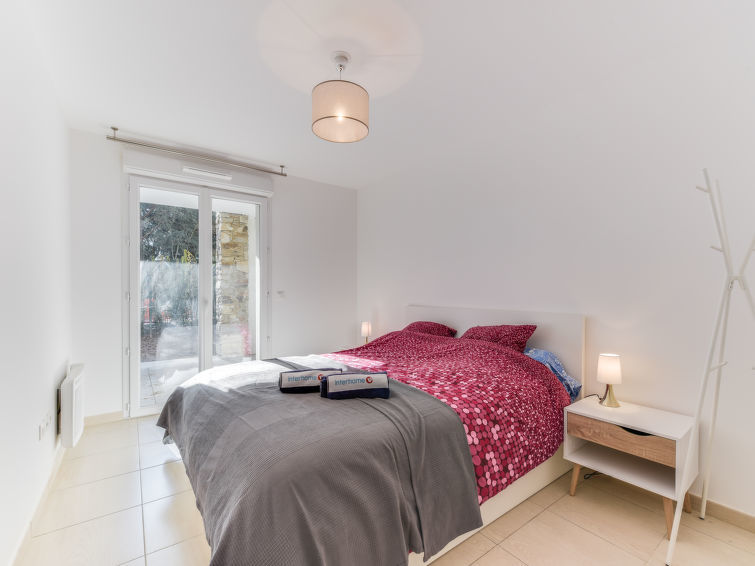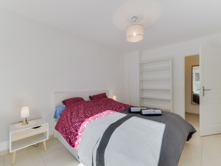 Appartement 2-kamers 47 m2, op de begane grond, op het zuiden gelegen. Comfortabel en mooi ingericht: woon-/eetkamer met 1 2-pers divanbed (160 cm, lengte 200 cm), TV (Flatscreen TV), elektrische rolluiken. Uitgang naar het terras. 1 kamer met 1 2-pers bed (160 cm, lengte 200 cm), elektrische rolluiken. Uitgang naar het terras. Open keuken (oven, afwasmachine, 3 keramische glas kookplaten, broodrooster, waterkoker, magnetron, diepvriezer, elektrische koffiemachine, pads voor de koffiemachine (Senseo) extra) met eettafel. Douche/WC. Elektrische verwarming, air-conditioning, boiler (200 liter). Groot terras 15 m2, op het zuiden gelegen, zithoek in de tuin 25 m2. Terrasmeubelen, elektrische barbecue, ligstoelen (2). Mooi uitzicht op de tuin. Ter beschikking: wasmachine, strijkijzer, haardroger. Internet (Internet (WiFi), gratis). Garage nr. 265, hoogte 190 cm, breedte 235 cm. TV alleen FR. Rookmelders.