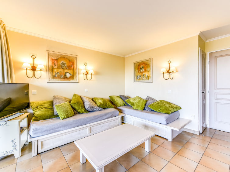 "Les Restanques 3", appartement 3-kamers 43 m2, op de begane grond. Mooi ingericht: woon-/eetkamer met TV (Flatscreen TV). Uitgang naar het terras, naar de zitplaats in de tuin. 1 kamer met 2 bedden (80 cm, lengte 190 cm). 1 kamer met 1 2-pers bed (140 cm, lengte 190 cm). Kookhoek (afwasmachine, 4 inductiekookplaten, magnetron, elektrische koffiemachine). Badkamer, douche/WC. Elektrische verwarming. Terras 15 m2, zithoek in de tuin 15 m2. Mooi uitzicht op zee en het landschap. Ter beschikking: Internet (Internet (WiFi), extra). Parkeerplaats nr. 4279. Rookmelders. 83068000010IV