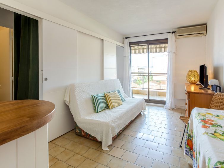 Appartement 2-kamers 28 m2 op de 4e verdieping. Comfortabel ingericht: woonkamer met 1 2-pers divanbed (1 x 140 cm, lengte 190 cm), air-conditioning. Uitgang naar het terras. 1 kamer met 1 2-pers bed (140 cm, lengte 190 cm). Kookhoek in de hal (2-pits kookplaat, oven, broodrooster, waterkoker, magnetron, elektrische koffiemachine, pads voor de koffiemachine (Nespresso) extra). Douche, aparte WC. Elektrische verwarming. Terras. Balkonmeubilair. Ter beschikking: wasmachine, strijkijzer, haardroger. Internet (Internet (WiFi), extra). Geschikt voor families. Niet rokers woning, geen parkeerplaats. Maximaal 1 klein huisdier/hond toegestaan. TV alleen FR. Rookmelders. Aanbod door een particulier volgens art. 155, IV van CGI. 83070001678QL