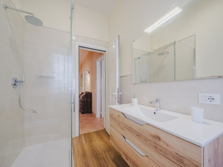 Huis 8-kamers 200 m2 op 2 verdiepingen. Mooi en gezellig ingericht: groot, open woon-/eetkamer met eettafel, TV, Flatscreen TV en air-conditioning. Uitgang naar het terras. 2 2-pers. kamers. 1 kamer met 2 bedden. Open keuken (oven, afwasmachine, 5 kookpitten (vlammen), broodrooster, waterkoker, elektrische koffiemachine) met air-conditioning. 2 douche/bidet/WC's. Gas-verwarming. Verwarming alleen beschikbaar van 01.11. tot 15.04. Bovenverdieping: (buitentrap) woonkamer met air-conditioning. Uitgang naar het balkon. 1 2-pers. kamer met air-conditioning. 1 2-pers. kamer met 1 bed en air-conditioning. 1 kamer met 2 bedden. Bad/bidet/WC, douche/bidet/WC. Gas-verwarming (extra). Tuin 500 m2. Barbecue, ligstoelen. Ter beschikking: strijkijzer, klamboe, kinderstoel, kinderbed tot 2 jaar, haardroger. Parkeerplaats (omheind, 4 Auto's). Rookvrij huis. Rookmelders, brandblusser. Geen interne verbinding tussen de aparte wooneenheden. Geen interne verbinding tussen de etages. IT046005C29GABB7PT,IT046005C2CMFSCV4U
