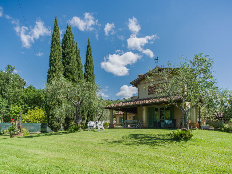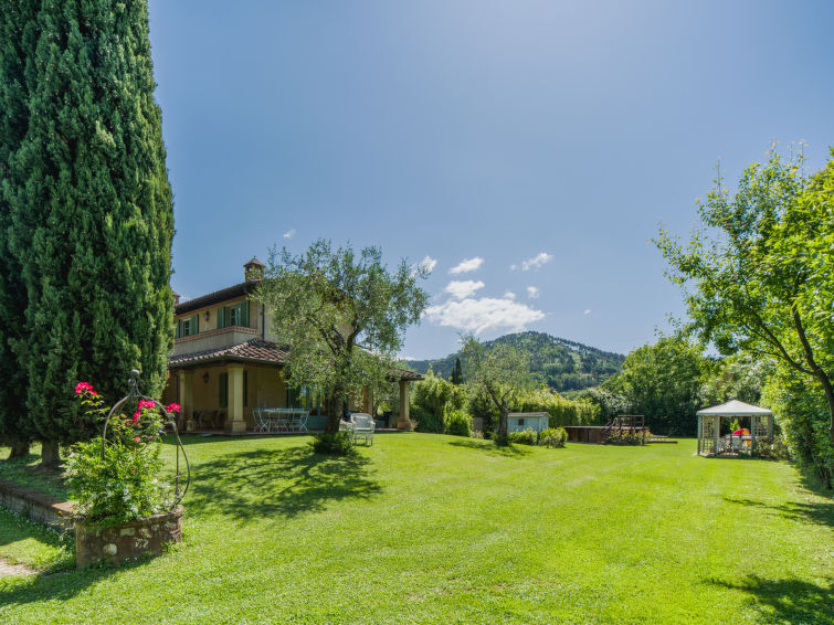 Capezzano 4 km van Camaiore: Moderne, mooi eengezinswoning "Il Casale", omgeven door weiden. 500 m van het centrum van Capezzano, 5 km van het centrum van Lido di Camaiore, 20 km van het centrum van Lucca, centrale, zonnige ligging, 5 km van zee, 5 km van het strand, aan een doodlopende weg, aan een weg, te midden van groen. Voor alleengebruik: tuin 1.500 m2 (omheind) met gazon, openluchtzwembad (verhoogd) (6 x 3 m, 100 cm diepte, seizoensgebonden beschikbaarheid: 01.Mei. - 04.Okt.). Buitendouche, patio, tuinmeubelen, barbecue, parkeerplaats (voor 5 auto's) op het terrein. Levensmiddelenwinkel 500 m, supermarkt 1 km, restaurant 1 km, bar 1 km, bushalte 500 m, treinstation "Viareggio" 6 km, zandstrand 5 km. Attracties in de buurt: Camaiore 5 km, Forte dei Marmi 11 km, Pietrasanta 5 km, Marina di Pietrasanta 9 km, Pisa 46 km, Carrara cave Fantiscritti 44 km. Bekende meren kunnen gemakkelijk worden bereikt: Torre del Lago 22 km, Lago di Massaciuccoli 16 km. Wandelgebied Antro del Corchia Levigliani 32 km. Auto noodzakelijk. De eigenaar accepteert geen jeugdgroepen.