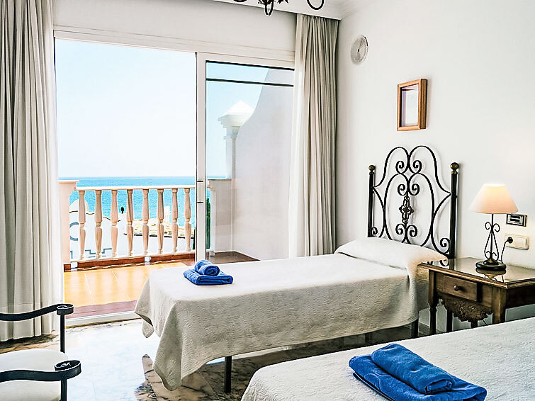 "Mijas Beach", huis in een rij 4-kamers 230 m2 op 2 verdiepingen. Het objekt is geschikt voor 6 volwassenen + 2 kinderen. Gedeeltelijk gerenoveerd in 2016: woon-/eetkamer 40 m2 met 1 2-pers divanbed (135 cm, lengte 190 cm), Digitale TV, air-conditioning en heteluchtverwarming. Uitgang naar het terras. Keuken (oven, afwasmachine, 4 keramische glas kookplaten, magnetron, diepvriezer). Aparte WC. Vloerverwarming. Bovenverdieping: 1 kamer met 1 2-pers bed, bad/bidet/WC, wastafel en TV. Uitgang naar het terras. 1 kamer met 2 bedden en TV. Uitgang naar het terras. 1 kamer met 2 bedden. Bad/bidet/WC. Vloerverwarming. Terras 20 m2. Uitzicht op zee. Ter beschikking: wasmachine, kinderstoel, kinderbed. Internet (WiFi, gratis). Parkeerplaats. VUT/MA/10340 // Reg. Nr.: ESFCTU0000290440001288710000000000000000VUT/MA/103401