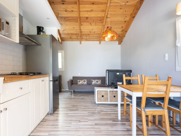 Huis 2-kamers 40 m2. Comfortabel en gezellig ingericht: woon-/eetkamer met 1 divanbed (120 cm, lengte 230 cm), Digitale TV en verwarming. Uitgang naar de tuin. 1 kamer met 1 2-pers bed (150 cm, lengte 200 cm). Open keuken in de hal (4 kookpitten (vlammen), broodrooster, waterkoker, elektrische koffiemachine, combimagnetron). Douche/WC. Tuin. Barbecue, zitgelegenheid. Mooi panoramazicht op zee en het landschap. Ter beschikking: wasmachine, strijkijzer, kinderstoel, kinderbed, haardroger. Internet (WiFi). 25485