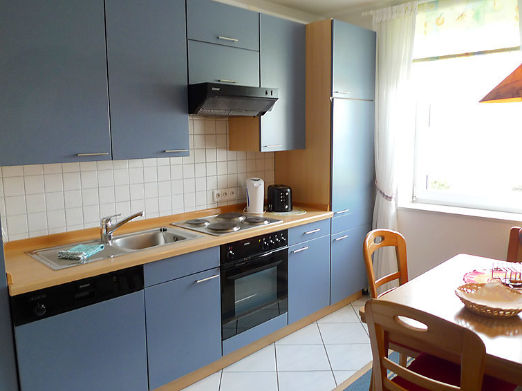 "Baltrum-Badestrasse", appartement 2-kamers 58 m2 op de 1e verdieping. Mooi en gezellig ingericht: woonkamer 17 m2 met Sat-TV (Flatscreen TV), radio en CD-speler. 1 kamer 10 m2 met 1 2-pers bed (2 x 90 cm, lengte 200 cm). Keuken 10 m2 (4-pits kookplaat, oven, afwasmachine, broodrooster, waterkoker, magnetron, elektrische koffiemachine) met eettafel, radio. Douche/WC. Balkon. Balkonmeubilair. Ter beschikking: kinderstoel (extra). Internet (Internet (WiFi), gratis). Koelkast zonder vriesvak, niet rokers woning. Rookmelders.