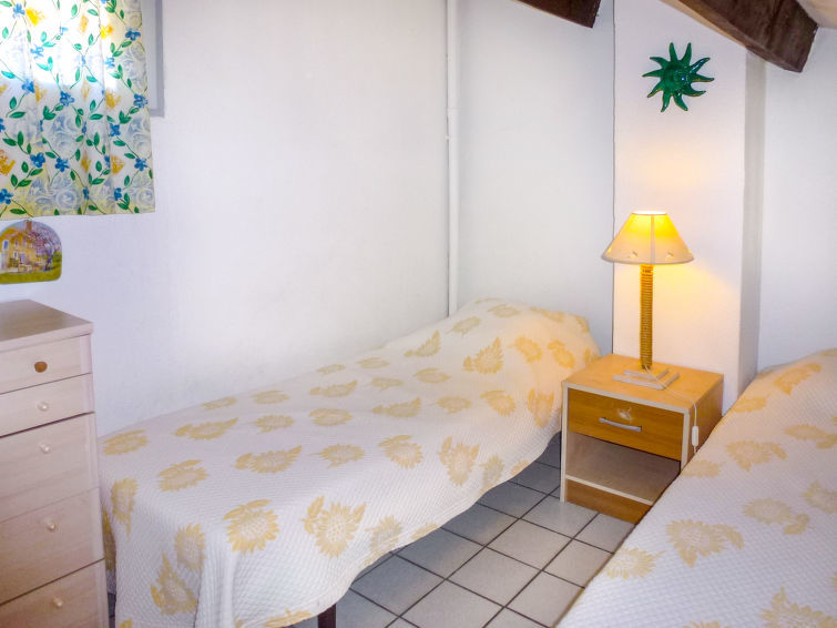 Huis in een rij 2-kamers 40 m2 op 2 verdiepingen. Woon-/eetkamer met TV. 1 kamer met 1 2-pers bed (140 cm, lengte 190 cm). Kookhoek (2-pits kookplaat, oven, afwasmachine, magnetron). Douche/WC. Bovenverdieping: (steile trap) galerij met afgeschuinde daken, hoogte van het plafond 130 - 220 cm met 2 bedden (80 cm, lengte 185 cm). Elektrische verwarming. Terras 15 m2, op het westen gelegen. Terrasmeubelen, ligstoelen. Ter beschikking: Internet (Internet (WiFi), extra). Parkeerplaats. Woning aan de straatzijde. Maximaal 1 huisdier/hond toegestaan. Rookmelders. In plaats van een afgesloten slaapkamer bevinden sommige slaapgedeeltes zich in een open ruimte (galerij, nis, etc.).
