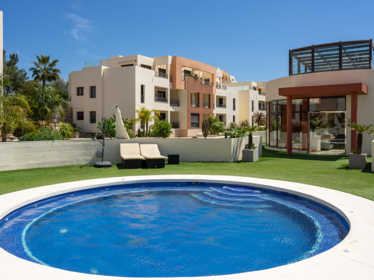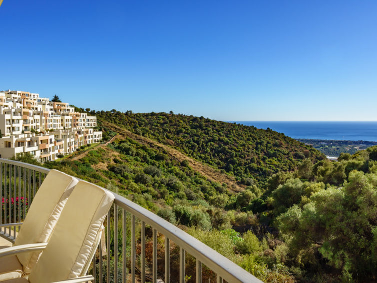 Moderne, luxueus flatgebouw "Cielo y mar Samara", bouwjaar 2008. 7 km van het centrum van Marbella, zonnige, verhoogde ligging, 5 km van zee, 5 km van het strand, op het zuiden. Voor medegebruik: tuin met gazon, 3 zwembaden, overdekt zwembad hoekig verwarmd (seizoensgebonden beschikbaarheid: 01.Jan. - 31.Dec.) met trap. Douche/WC bij het zwembad, kinderzwembad, hot tub. In het complex: internetaansluiting, sauna, fitnessruimte, massage (extra). Ontspanningsruimte, speelkamer, lift. Gemeenschappelijke garage. Carport. Supermarkt 4 km, restaurant 4 km, bushalte "Hospital Costa del Sol" 4.3 km, zandstrand "Bahía Marbella" 5 km. Golfterrein (18 holes) 4 km. Auto noodzakelijk. De eigenaar accepteert geen jeugdgroepen. Het vakantiecomplex wordt 24 uur per dag bewaakt. De omgeving is gevoelig voor geluidsoverlast. Gelieve geen lawaai te maken en de rust te bewaren.