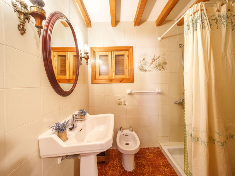 Establiments 4 km van Palma: Zeer groot, gezellig landgoed "Es Muntant", van 2 verdiepingen, omgeven door bomen en velden. In de wijk Establiments, buiten de plaats, 4.5 km van het centrum van Palma de Mallorca, zonnige ligging villa wijk, 1 km van de bosrand, 12 km van zee, 12 km van het strand. Voor alleengebruik: wild terrein, tuin met planten en bomen, openluchtzwembad hoekig (4 x 10 m, 100 - 160 cm diepte, seizoensgebonden beschikbaarheid: 01.Jan. - 31.Dec.). Buitendouche, patio, prieel, prieel, tuinmeubelen, barbecue. In het huis: internetaansluiting, Internet (WiFi), bergruimte voor fietsen, air-conditioning, wasmachine. Parkeerplaats bij het huis op het terrein. Levensmiddelenwinkel 1.9 km, supermarkt 2.2 km, winkelcentrum 5 km, restaurant 10 m, bar, bakkerij 2.1 km, fietsverhuur 5 km, bushalte 150 m, treinstation 6.5 km, zandstrand 12 km. Jachthaven 13 km, golfterrein (18 holes) 6 km. Attracties in de buurt: Esporles, Bunyola, Soller. Palma de Mallorca, Playa de Palma, Serra de Tramuntana, Lluc. Escorca, Restaurante Es Muntant 15 m. Auto noodzakelijk. Het objekt is geschikt voor 8 volwassenen. De eigenaar accepteert geen jeugdgroepen. Laden en lossen van de baggage is mogelijk bij het huis. Hoofdstraat in de buurt. Vliegveld 18 km van het huis.