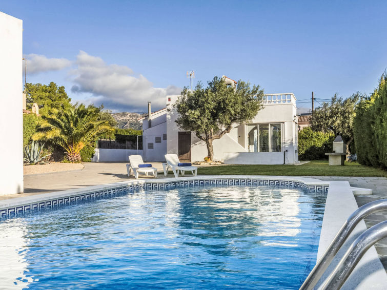 Las Tres Calas 7 km van Miami Platja: Gezellige, comfortabele villa "Blanca". Geïsoleerde, rustige ligging, 2 km van zee, 2 km van het strand. Voor alleengebruik: terrein 900 m2 (omheind), openluchtzwembad hoekig (5 x 11 m, 80 - 190 cm diepte, seizoensgebonden beschikbaarheid: 01.Jan. - 31.Dec.). Douche/WC bij het zwembad, patio, prieel, tuinmeubelen, barbecue, onderhoud zwembad door de eigenaar/tuinman. Parkeerplaats op het terrein. Winkel 1.8 km, supermarkt 2 km, restaurant 1.8 km, bar 1.8 km, bushalte 1.5 km, treinstation "ametlla de mar" 5.7 km. Golfterrein (18 holes) 2 km, tennis 500 m. Attracties in de buurt: Parque Portaventura 48 km, parque Aquopolis 51 km, parque natura del Delta del Ebro 35 km, Tarragona 57 km, Reus 48 km, Barcelona 153 km. Auto noodzakelijk. Groepen jongeren uitsluitend op aanvraag.