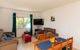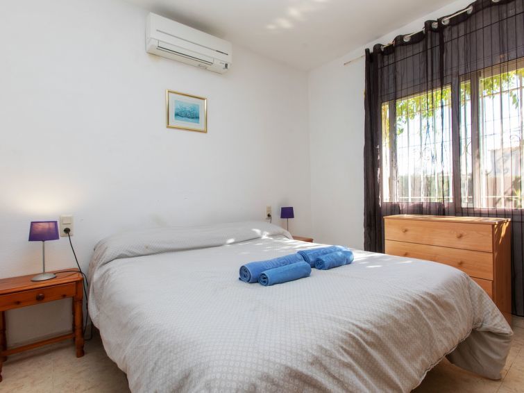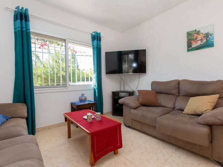 "Villa del Sol", villa 4-kamers 120 m2. Comfortabel en gezellig ingericht: woon-/eetkamer met eettafel, Sat-TV en air-conditioning. 2 kamers, elke kamer heeft 1 2-pers bed (135 cm), air-conditioning. 1 kamer met 2 bedden (90 cm), air-conditioning. Keuken (4-pits kookplaat, oven, afwasmachine, broodrooster, magnetron, elektrische koffiemachine). Bad/WC, douche/WC. Zithoek in de tuin. Terrasmeubelen, barbecue. Ter beschikking: wasmachine, strijkijzer, haardroger. Parkeerplaats (2 Auto's). Let op: TV alleen FR. HUTTE003045