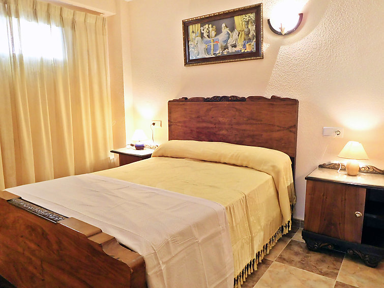 "Halcon Levante", appartement 3-kamers 40 m2 op de 2e verdieping. Ruim en licht, eenvoudig en doelmatig ingericht: woon-/eetkamer 23 m2 met Digitale TV, air-conditioning en heteluchtverwarming. Uitgang naar het terras. 1 kamer 9 m2 met 2 bedden (90 cm, lengte 190 cm). Uitgang naar het terras. 1 kamer 9 m2 met 1 2-pers bed (135 cm, lengte 190 cm), ventilator. Keuken (2 inductiekookplaten, broodrooster, waterkoker, magnetron, diepvriezer, elektrische koffiemachine). Douche/WC. Klein terras 6 m2. Terrasmeubelen. Beperkt uitzicht op zee, het zwembad en de plaats. Ter beschikking: wasmachine, strijkijzer, haardroger. Internet (WiFi, gratis). Parkeerplaats nr. S/N. 1 klein huisdier/hond toegestaan. TV alleen ES. VT-321937-BM // Reg. Nr.: ESFCTU0000030280001072430000000000000000VT-321937-BM0