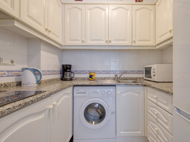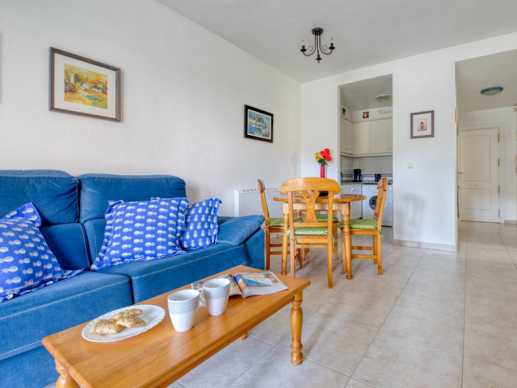 "Royal Playa II", appartement 3-kamers 70 m2, op de begane grond. Doelmatig ingericht: woon-/eetkamer met Sat-TV, Digitale TV, CD-speler, stereo-installatie, DVD en elektrische verwarming. Uitgang naar de tuin, naar het terras, naar het zwembad. 1 kamer met 1 2-pers bed (1 x 150 cm, lengte 190 cm), elektrische verwarming en ventilator. 1 kamer met 2 bedden (90 cm, lengte 190 cm), elektrische verwarming en ventilator. Open keuken (3-pits kookplaat, magnetron, diepvriezer, grill). Bad/WC, aparte WC. Terras 12 m2, overdekt. Terrasmeubelen, ligstoelen. Uitzicht op het zwembad en de tuin. Ter beschikking: wasmachine. Internet (WiFi, gratis). Parkeerplaats nr. 6. Maximaal 1 huisdier/hond toegestaan. TV alleen EN, ES. AT-432590-A // Reg. Nr.: ESFCTU00000304500048073200000000000000000AT-432590-A3
